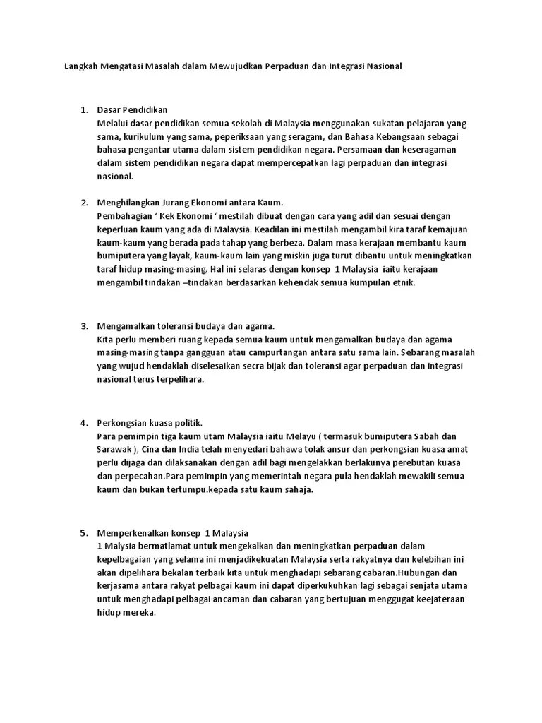 Namun, yang wajib dipelajari ialah rujukan untuk buku, jurnal dan laman web. Untuk mengekalkan perpaduan suatu cabaran yang sangat mencabar dan memerlukan suatu tempoh yang lama penubuhan sekolah kebangsaan (sk) telah diilhamkan oleh para pemimpin negara sebagai wahana untuk perpaduan rakyat pelbagai kaum. Masalah yang akan timbul dalam memupuk perpaduan kaum. Cabaran ekonomi cabaran ekonomi juga memberi impak kepada etika dan peradaban manusia.